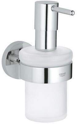 Grohe Essentials folyékony szappanadagoló, anyag: üveg / fém, tölthető mennyiség: 160 ml, az alábbiakból áll: tartó (40369001) üveg adagoló (40394001), rejtett rögzítés, GROHE StarLight króm felület, csavarral rögzíthető.