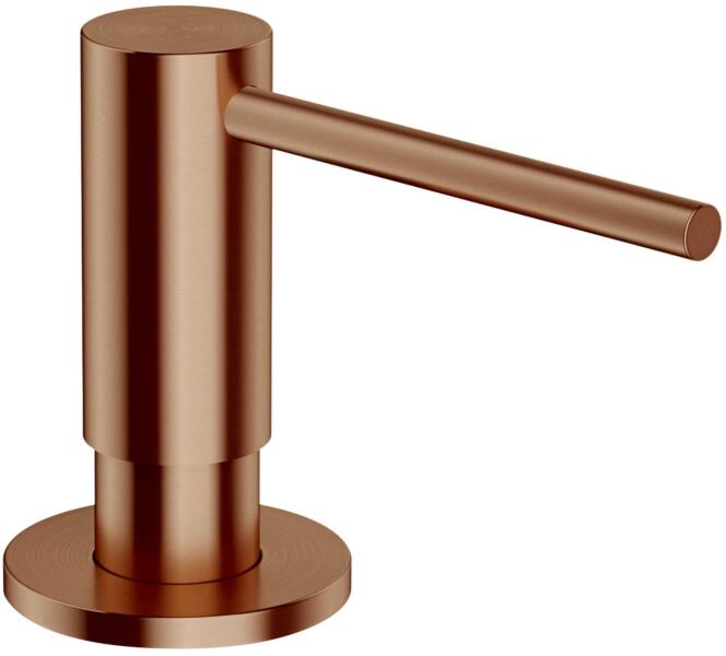 MODERN PROJEKT | folyékony szappan adagoló Szín: csiszolt réz (CPB) A MODERN PROJECT kiegészítő kollekciót a letisztult forma és a minimalista design jellemzi. A tökéletesen kifinomult, kör alakon alapuló forma időtlen, modern jelleget kölcsönöz a kollekciónak. A folyékony szappanadagoló praktikus és esztétikus megoldás, amely a konyhában és a fürdőszobában egyaránt hasznosnak bizonyul. Megkönnyíti a munkaterület rendben tartását és lehetővé teszi, hogy naponta több helyet nyerjen, a közvetlenül a munkalapba, mosogatóba vagy medencébe való beszerelés lehetősége pedig teljes rugalmasságot biztosít az elrendezésben. Az OMNIRES szerelvények felületével színben harmonikusan illeszkedik a többi szerelvényhez, ergonomikus kialakítása pedig kényelmes és gyors hozzáférést biztosít a szappanhoz vagy mosogatószerhez A csiszolt réz egy nemes kivitel, meleg vörösesbarna színnel és szatén felülettel. A bevonatot fejlett PVD-technológiával állították elő. Műszaki jellemzők: sárgaréz pult kifolyónyílás: 9,1 cm a munkalap maximális vastagsága: 4 cm rögzítőfurat: ø28 - 35 mm palack kapacitása: 500 ml feltöltés felülről rozettaméret: ø5,2 cm