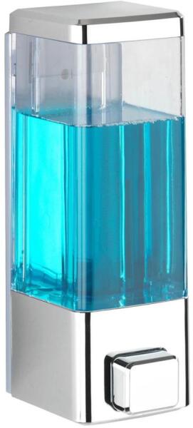 Elegáns szappan- és fertőtlenítőszer-adagoló modern krómozott kivitelben. Sokoldalú használat: folyékony szappanhoz, kézfertőtlenítőhöz, samponhoz, tusfürdőhöz vagy testápolóhoz. Kényelmes, 320 ml-es kapacitás a mindennapi használathoz a fürdőszobában vagy a WC-n. Egyszerű adagolás egyetlen gombnyomással. Nem csöpög, így tisztán tartja a mosdókagylót és a zuhanyt. Áttetsző tartály a maradék töltet egyszerű ellenőrzéséhez. Kiváló minőségű műanyagból készült a hosszú élettartam érdekében. Könnyen tisztítható és egyszerűen utántölthető. Fúrás nélküli felszerelés a mellékelt kétoldalas ragasztószalaggal. A csomag tartalmaz csavarokat és tipliket a hagyományos felszereléshez. Kompakt méretek: szélesség 6 cm, magasság 18,5 cm, mélység 7,5 cm. Mindössze 168 g könnyű súly a könnyű kezelhetőségért. Istres sorozat – stílusos megoldás a modern fürdőszobához.